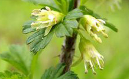 The gooseberry bush has thorny, arching branches giving the plant a height and breadth of three to five feet. Flower buds are born laterally on one-year-old wood and on short spurs of older wood. Each bud opens to yield from one to four flowers, depending on cultivar.