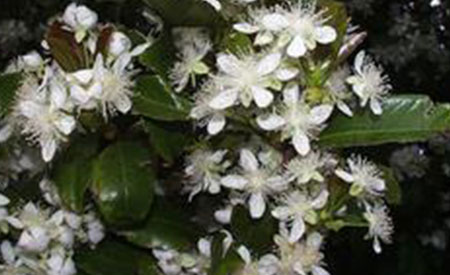 The Grumichama tree is highly ornamental, slender, and erect. It can grow up to 35 feet tall but can also be kept pruned as a hedge while still producing delicious, cherry like fruit. Heavy in foliage, the oblong-oval leaves are wide with a glossy, thick, leathery texture. The flowers are white with four petals and around 100 white stamens.