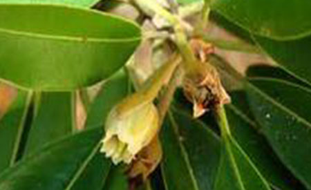 The sapodilla is a fairly slow-growing, long-lived tree, upright and elegant, distinctly pyramidal when young; to 60 ft high in the open but reaching 100 ft when crowded in a forest. It is strong and wind-resistant, rich in white, gummy latex.